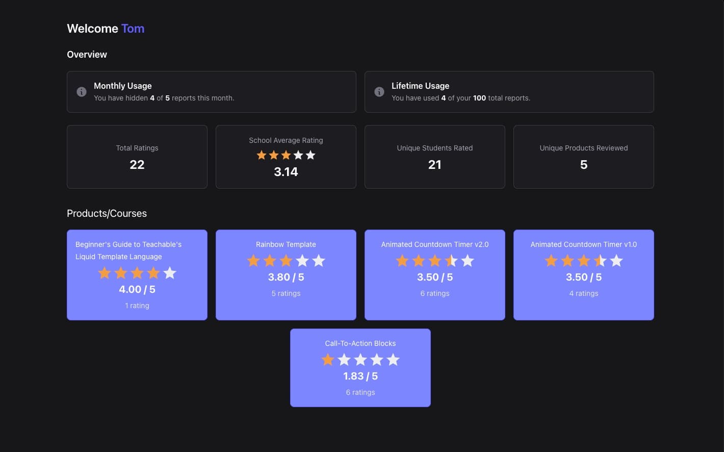 Be rewarded by creating the best courses and receive ⭐⭐⭐⭐⭐ to show on your school.