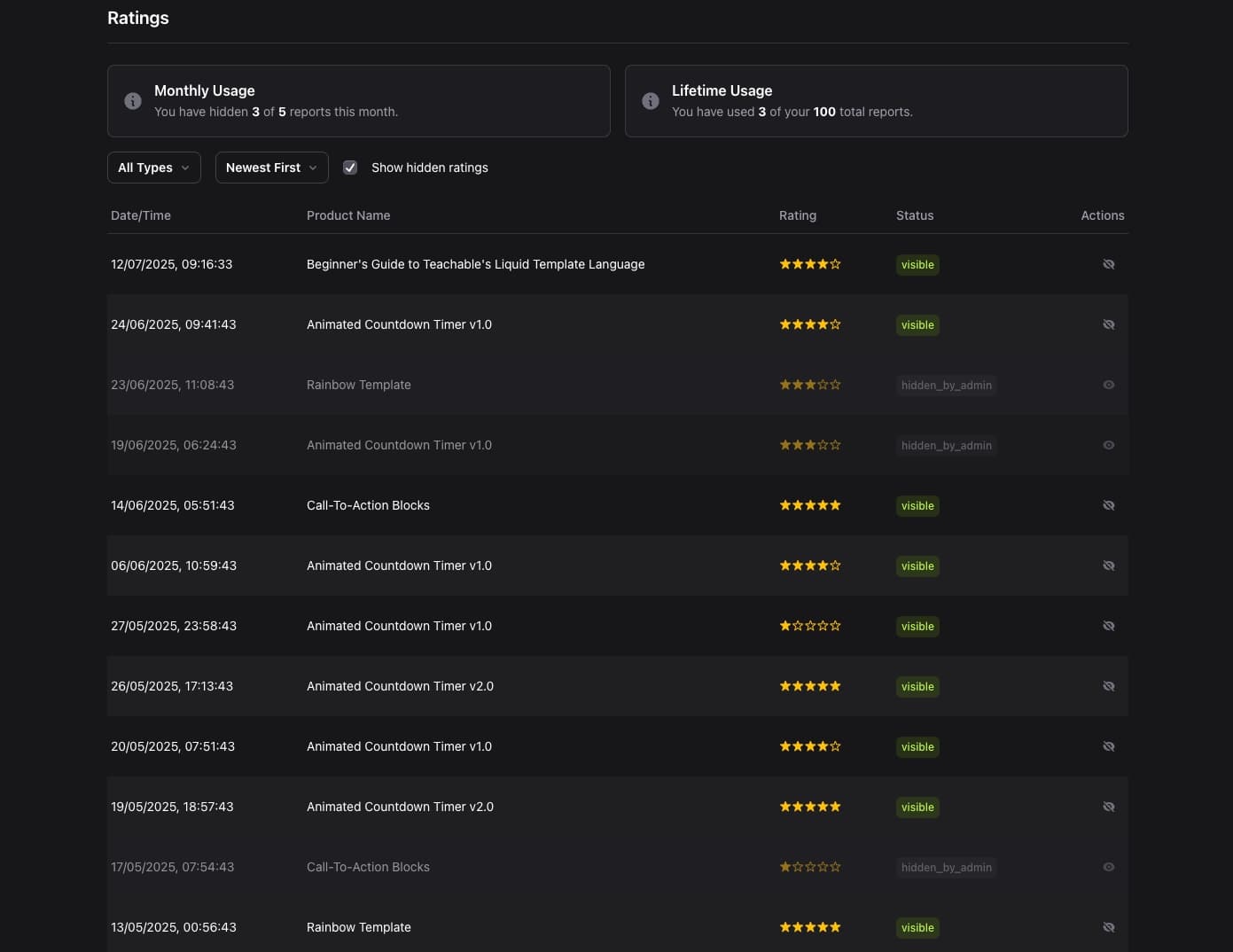 - Hide Unfair Ratings ⚠️ (5/month)